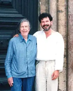 John Milton Cage Jr. (* 5. September 1912 in Los Angeles; † 12. August 1992 in New York City), meist John Cage genannt, war ein US-amerikanischer Komponist und Künstler. Mit seinen mehr als 250 Kompositionen,[1] die häufig als Schlüsselwerke der Neuen Musik angesehen werden, gilt er als einer der weltweit einflussreichsten Komponisten des 20. Jahrhunderts.[2] Hinzu kommen musik- und kompositionstheoretische Arbeiten von grundsätzlicher Bedeutung. Außerdem gilt Cage als Schlüsselfigur für die Ende der 1950er Jahre entstehende Happeningbewegung und wichtiger Anreger für die Fluxusbewegung und Neue Improvisationsmusik. Neben seinem kompositorischen Schaffen betätigte er sich auch als Maler und befasste sich mit Mykologie, der Wissenschaft von den Pilzen.
