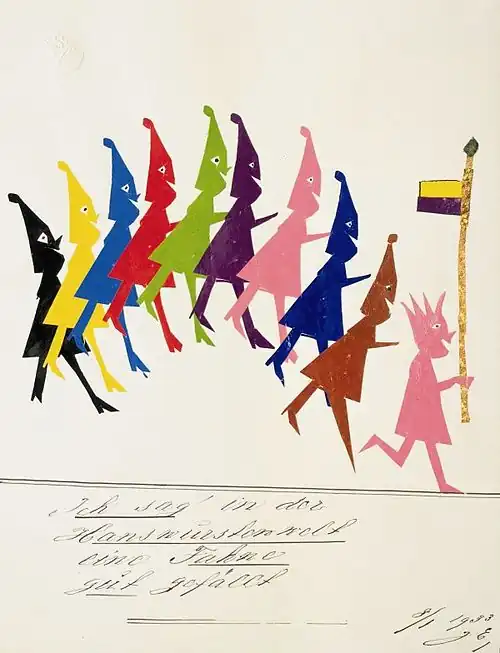 „Zuerst wird das Bild gemalt, / und dann wird es aufgeklebt, / weil sich hierdurch die Plastik hebt“ -