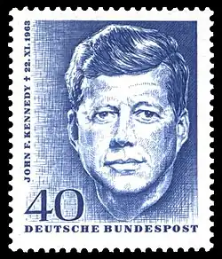 - John-F.-Kennedy-Platz in Berlin (der Platz vor dem Rathaus Schöneberg, Ort der Berliner Rede von John F. Kennedy am 26. Juni 1963; bis 1963 Rudolph-Wilde-Platz), Braunschweig, Dachau und Landshut