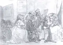 Mit Hunters wachsendem Bekanntheitsgrad wuchs auch die Zahl seiner Schüler. Von den 120 angehenden Chirurgen, die in den Jahren zwischen 1768 und 1772 ihre Ausbildung am St. George’s Hospital begannen, schrieben sich mehr als die Hälfte als Schüler von Hunter ein. Allein im Jahr 1771 studierten mehr als zwei Drittel der Anatomieschüler von St. George’s bei ihm.[64] Darüber hinaus hielt Hunter zwischen 1772 und 1777 jeweils von Oktober bis April an drei Abenden die Woche private Vorlesungen. Obwohl er diese Vorlesungen unter dem Titel The Principles and Practice of Surgery („Die Prinzipien und Praxis der Chirurgie“)[65] in Zeitungsanzeigen bewarb, mahnte er seine Studenten, Operationen so weit wie möglich zu vermeiden. Anstatt Themen der praktischen Chirurgie zu behandeln, gab er seinen Zuhörern umfassende Einführungen in die Physiologie des menschlichen Körpers. Seine Studenten sollten auf diese Weise lernen, wie ein gesunder Körper funktionierte und welche Vorgänge in einem kranken Körper abliefen.[66]