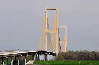Zentrales Element der 3.661 m langen Brücke ist die zweihüftige Schrägseilbrücke (971 m) mit einer Spannweite von 482 m zwischen den zwei H-Pylonen aus Stahlbeton. Diese besitzen eine Höhe von 158,5 m von der Fundamentunterkante und sind über 50 m tief im Flussbett mittels Pfahlgründung verankert. Dazu wurden je 21 Stahlrohre mit 2,4 m Durchmesser in den Boden gebohrt, mit Beton verfüllt und in die jeweiligen Fundamente integriert. Der 22 m breite Fahrbahnträger ist als Stahlvollwandträger mit einer 24 cm dicken Fahrbahn aus Stahlbeton ausgeführt und wird von 136 Kabeln getragen, die an den Pylonen im Fächersystem angeordnet sind.[6]