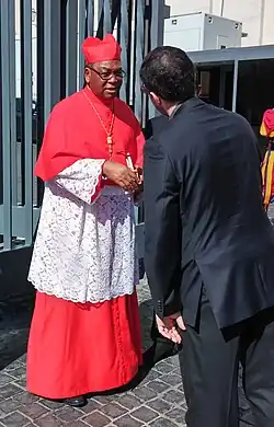 Am 24. Oktober 2012 gab Papst Benedikt XVI. bekannt, dass er ihn zum Kardinal kreieren wolle.[1][2] Im Konsistorium vom 24. November desselben Jahres nahm er ihn als Kardinalpriester mit der Titelkirche San Saturnino in das Kardinalskollegium auf[3] und ernannte ihn am 31. Januar 2013 zum Mitglied der Kongregation für die Glaubenslehre und des Päpstlichen Rats für die Familie[4]. Nach dem Rücktritt Benedikts XVI. nahm Kardinal Onaiyekan am Konklave 2013 teil.