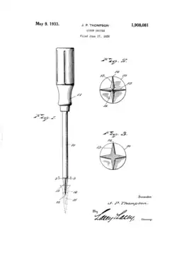 - ↑ a b Patent US1908081A: Screw Driver. Angemeldet am 17. Juni 1932, veröffentlicht am 9. Mai 1933, Anmelder: H. F. Phillips, Erfinder: John W. Thompson.