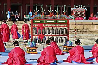 - ↑ a b Royal ancestral ritual in the Jongmyo shrine and its music. UNESCO Intangible Cultural Heritage, 2008, abgerufen am 19. Januar 2024 (englisch).