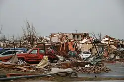 Am späten Sonntagnachmittag des 22. Mai 2011 suchte ein verheerender Tornado der Stufe 5 auf der Fujita-Skala den 50.000-Seelen-Ort im Mittleren Westen der USA heim. Der Tornado wuchs schnell auf eine Breite von rund 1,6 km an und verwüstete rund 25 % aller Gebäude auf seinem Pfad durch den Süden der Stadt.[2][3]
