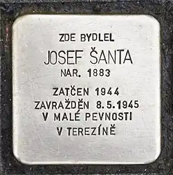 - ↑ a b Odpůrce nacistů Šanta má svůj Stolperstein. Vedle Šantovky, in: Olomoucký deník, 18. September 2014, online auf: olomoucky.denik.cz/...20140918