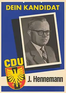 1945 war Hennemann Mitbegründer der CDU im Landesverband Westfalen. Er war in zahlreichen Gremien der Partei vertreten. Von 1946 bis 1952 war er Kreisgeschäftsführer der CDU und ab 1952 Geschäftsführer des Seminars für Staatsbürgerkunde in Olpe.