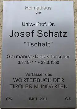 - ↑ Schatz, Josef: Wörterbuch der Tiroler Mundarten. 2 Bde.(= Schlern-Schriften 119–120). Drucklegung durch Karl Finsterwalder. Verlagsbuchhandlung Wagner, Innsbruck 1955–1956