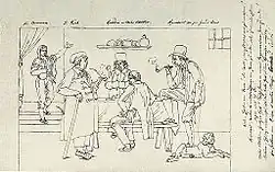 - Karikatur auf die Kunstpraxis an der Hohen Karlsschule (Staatsgalerie Stuttgart, Grafische Sammlung), 1791, teilaquarellierte Zeichnung, 35 cm × 50,1 cm