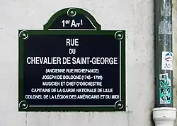- ↑ Alain Guédé: 2 avril 1793. Un colonel Noir pour sauver la République: Joseph de Boullongne, devenu le Chevalier de Saint-George. In: gaucheimp.org. 3. April 2022.
