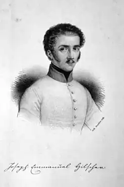 - ↑ Joseph Emanuel Hilschers Dichtungen. Originale und Übersetzungen aus Byron, Moore, Goldsmith und anderen. Herausgegeben von Ludwig August Frankl mit einem biographischen Vorworte. Gustav Heckenast, Pesth 1840, S. 3.