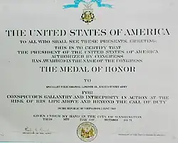 Für den Mut, den er beim vergeblichen Versuch seinen Kameraden zu helfen, unter Beweis gestellt hatte, wurde er am 16. Dezember 1971 posthum vom Vizepräsidenten Spiro T. Agnew mit der Medal of Honor ausgezeichnet. Die Auszeichnung wurde seiner Frau und seinem Sohn, den er nie gesehen hatte, überreicht.