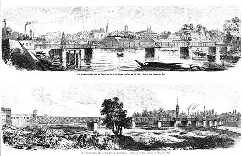 - ↑ Die Eröffnung der Oder-Eisenbahnbrücken bei Groß-Glogau. In: Illustrirte Zeitung Bd. 31, Nr. 783, 3. Juli 1858, S. 6 (Web-Ressource).