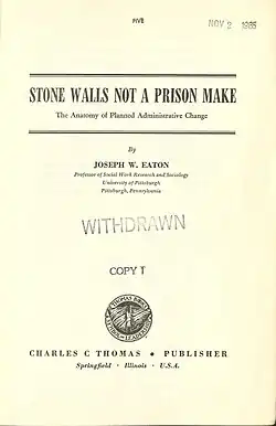 - Stone walls not a prison make : the anatomy of planned administrative change. Springfield: Thomas, 1962