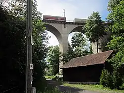 Das Ortsbild ist durch den Jossaviadukt geprägt, eine ursprünglich vierbögige Eisenbahnbrücke über die Jossa, kurz vor deren Einmündung in die Sinn. Nachdem sie von Truppen der Deutschen Wehrmacht am 4. April 1945 gesprengt wurde, konnten die amerikanischen Besatzungstruppen sie bereits am 27. Mai 1945 behelfsmäßig wieder instandsetzen, um die wichtige Nord-Süd-Bahnlinie wieder befahrbar zu machen. Eine Neubrücke wurde schließlich am 27. Oktober 1951 eingeweiht. Diese Betonbrücke, erbaut von der Firma Bödicker aus Dörnigheim, bestand nun aus zwei statt drei Pfeilern und drei statt vier Rundbögen.[2] Sie überquert das Jossatal in 32 Metern Höhe und ist Bestandteil der alten Nord-Süd-Strecke Fulda–Würzburg. Zum Teil verkehren auch Güterzüge der Relation Frankfurt–Würzburg über Jossa.