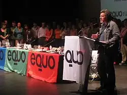 Auf dem Gründungsparteitag vom 8. und 9. Oktober 2011 in Rivas-Vaciamadrid bildete sich Equo als politische Partei, um für die nächsten Parlamentswahlen zu kandidieren.[18] In dieser Versammlung wurde ein Wahlprogramm vereinbart und eine Verwaltungskommission gewählt, die bis zur Abhaltung des 1. regulären Parteitages (7. und 8. Juli 2012) im Amt bleiben sollte.[19][20]
