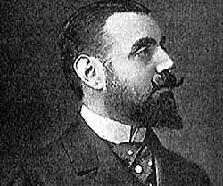 Juan Manuel Sánchez y Gutiérrez de Castro (Karikatur von Joaquín Moya in „Gedéon“ vom 16. April 1902)