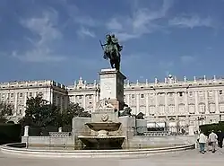 Den Auftrag zur Anfertigung der Büste bekam er von Gaspar Guzmán y Pimentel, der auch als Conde-Duque de Olivares bekannt war, und als Günstling (valido) des Königs galt. Die aus Ton hergestellte Büste wurde am 23. Januar 1636[1] an den Florentiner Bildhauer Pietro Tacca gesendet,[4] der unter Einbezug dieser Vorlage in Italien ein technisch anspruchsvolles, weil nur auf den Hinterbeinen ruhendes, Reiterstandbild aus Bronze[3] gießen ließ. Nachdem es über Livorno ausgeschifft worden war, wurde es nach Verzögerungen am 29. Oktober 1642 im Jardin de la Reina aufgestellt und steht seit 1844 auf der Plaza de Oriente.