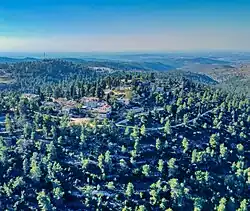 Auch aus klimatischen Gründen sind Wohnorte im Bergsattel Jerusalems begehrt, entsprechend aber auch keine billigen Wohnlagen. Dort wohnen vor allem Familien der Mittelklasse, so etwa wie Mevasseret Zion, ab 1951 angelegt auf dem Gebiet des im Krieg um Israels Unabhängigkeit entvölkerten Qalunya, das Vespasian an Stelle des im Jüdischen Krieg (66–70) entvölkerten Ha-Moṣa als Colonia Amosa mit 800 römischen Soldaten und Familien besiedelte, denen oblag, den Korridor nach Jerusalem militärisch zu sichern.[2]:792So breitet sich die Großstadt in alle Richtungen aus, wobei die Ausläufer des aufgeforsteten Jaʿar Jerūschalajim / יַעַר יְרוּשָׁלַיִם / ‚Wald Jerusalems‘ in tief eingeschnittenen Tälern als Grüne Lunge in die westlichen Außenbezirke hineinragen.