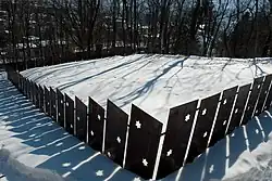 Die 2009 eingeweihte Gedenkstätte wurde von den Vorarlberger Architekten Ada und Reinhard Rinderer gestaltet. Rötlich-braune, mit Davidsternen versehene Stahlplatten markieren den Verlauf der alten Friedhofsmauer. Die Platten umfassen den Platz auf drei Seiten, auf der Westseite geht das Gelände in einen leichten Abhang über. An der Stelle des ehemaligen Eingangs auf der Südseite befindet sich eine symbolische Tür. Eine Gedenktafel weist auf die Geschichte des Friedhofs hin.