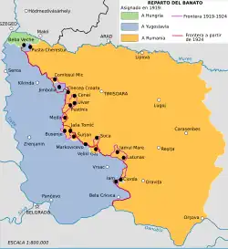 Das Banat beanspruchten Rumänien und Jugoslawien gleichermaßen, bis man sich auf eine Teilung einigte.[13]