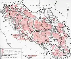 - ↑ Tito: Selected Military Writings. Vojnoizdavčki Zavod, Belgrad 1966 (Landkarte): „Liberated territory in Yugoslavia and grouping of forces of the People’s Liberation Army of Yugoslavia and of the invaders towards the end of September 1944“