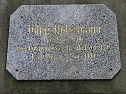 - ↑ Reinhold S. 425f. Der Anstoß dazu kam von der SED-Kreisleitung: Julius Hülsemann erschien zu sehr als „ein Feind der Arbeiter und aller fortschrittlichen Bürger“ (Schörnig S. 65), als dass solche Ehrungen zeitgemäß wären. Vgl. auch Arnstädter Stadtecho Jg. 12 (2011), Nr. 134 vom 22. Juni 2011, S. 22.