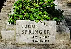 Julius Springer starb 1968. Seine letzte Ruhe fand er auf dem Friedhof Zehlendorf Onkel-Tom-Straße. (Seitentrakt 52)