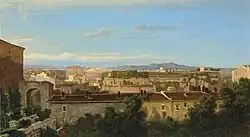 - Blick auf das Albanergebirge von der Terrasse vor Porta S. Paolo, Mischtechnik, 19,8 × 32,8 cm, Allmers-Haus