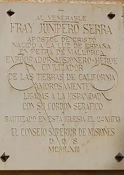 Gedenktafel an der Pfarrkirche Sant Pere in Petra
