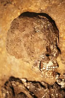 Im September 2010 wurde das vollständig erhaltene Skelett einer etwa 20 bis 35 Jahre alten Frau freigelegt und Lilith benannt. Es wurde in einem 1,9 Tonnen schweren Block geborgen und in das Rheinische Landesmuseum Bonn gebracht.[5] Die Frau war in Seitenlage mit leicht angewinkelten Beinen und vor das Gesicht gelegten Händen abgelegt worden. Ihr Skelett besteht nur noch aus geringen Mengen an Knochensubstanz; überwiegend aus einer mit Lehm und Wasser verfüllten, nur wenige Millimeter dünnen Calciumphosphatschicht.[6][7]