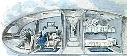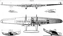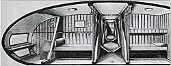 - Als Rohrgerüst mit Wellblechbeplankung. Die Passagierräume waren an der dicksten Stelle des Tragflügels (2,30 m Höhe) untergebracht. Vorgesehen waren zwölf Kabinen mit je sechs Personen im Vorderteil und 14 Kabinen für je zwei Personen im Mittelgang des Flügels.