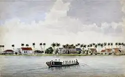 Die Kuppelkirche und das Denkmal gingen 1821 bei einem großen Stadtbrand in Paramaribo verloren.