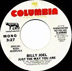 Im November 1977 kam die Single-Auskopplung in die Billboard Hot 100. Das Stück wurde Joels erster Top-Ten-Hit in den Vereinigten Staaten;[3] höchste Platzierung war Position drei. In den Adult-Contemporary-Charts erreichte es Platz eins.[4] Im Januar 1978 veröffentlichte CBS die Single auch in Großbritannien, die in Europa die Katalognummer CBS 5872 trug. Joel gab damit sein britisches Chart-Debüt am 11. Februar 1978; Just the Way You Are blieb neun Wochen in der Hitparade und erreichte Platz 19. Im Jahr 1986 wurde das Lied als Doppel-A-Seite mit Joels Stück She’s Always a Woman mit der Katalognummer CBS A 6862 wiederveröffentlicht und stand eine weitere Woche auf Platz 53 der britischen Charts.[5] Eine Wiederveröffentlichung in den USA im August 1988 auf CD gemeinsam mit dem Nummer-eins-Hit It’s Still Rock ’n’ Roll to Me erreichte die Hitparade nicht.[3]