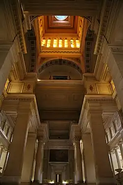 Die eindrucksvolle Empfangs- und Verteilerhalle (Salle des pas perdus), in die man beim Betreten des Gebäudes durch den Haupteingang sogleich gelangt, ist einschließlich der Galerien und Treppenaufgänge 3.600 Quadratmeter groß und 97,5 Meter hoch.[4] Der Fußboden ist im Zentrum mit einem großen Windrosenmosaik geschmückt.[5]