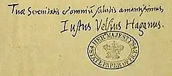- ↑ Apologia Iusti Velsii Hagani, contra haereticae pravitatis appellatos Inquisitores, von Justus Velsius in der Google-Buchsuche