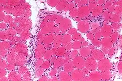 Mikrofoto von Dermatomyositis. HE-Färbung.