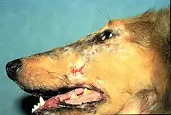 Dermatomyositis im Gesichtsbereich bei einem Collie