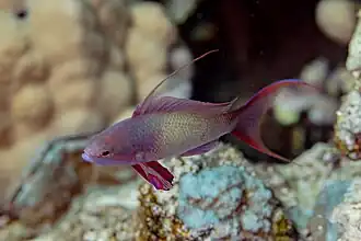 - ↑ a b c d Phillip C. Heemstra u. K.V. Akhilesh: Review of the anthiine fish genus Pseudanthias (Perciformes: Serranidae) of the western Indian Ocean, with description of a new species and a key to the species. aqua, International Journal of Ichthyology, Band 18, Nr. 3, Juli 2012, PDF, S. 156–158.