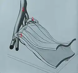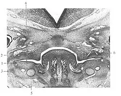 Bei 11 bis 15 mm großen menschlichen Embryonen beginnt die Entwicklung des juxtaoralen Organs als Aussprossung einer Epithelleiste (1) aus dem Mundhöhlenepithel einer Seitentasche (Sulcus buccalis) der embryonalen Mundhöhle. In der Folge verlagert sich die Organanlage zusammen mit dem Nerven weg von der Mundschleimhaut an die eingangs erwähnte Stelle der tiefen Gesichtsregion.