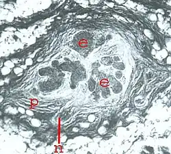 Im histologischen Bild zeigen sich zahlreiche Epithelknospen, eingebettet in zell- und nervenreiches Bindegewebe. Am Epithel enden an vielen Stellen sensorische Nervenästchen. Es gibt aber auch viele spezialisierte Nervenendkörperchen.