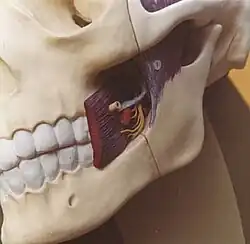 Das juxtaorale Organ liegt in der tiefen seitlichen Gesichtsregion zwischen Musculus buccinator und Temporalis-Sehne, unter der Fascia buccotemporalis nahe der Durchtrittsstelle des Ohrspeicheldrüsengangs durch den Wangenmuskel. Das Organ wird vom Nervus buccalis innerviert.