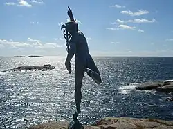 Die berühmteste nicht-geologische Sehenswürdigkeit auf Källskär, die auch in den Postkartenangeboten auf Kökar dominiert, ist eine Nachbildung der Statue des Merkur von Giovanni Bologna. Dabei steht der Götterbote auf dem Antlitz des Windgottes Zephyr.
