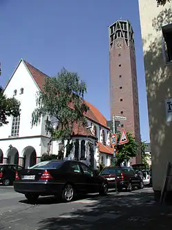 Die Bauerbankstraße an der Pfarrkirche Sankt Pius in Zollstock