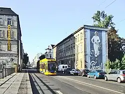 Für viele Leipziger ist mit der König-Johann-Brücke eng verbunden die „Persilfrau“, eine giebelfüllende Werbung am Haus Zschochersche Straße 54. Sie wurde in einer Variation des 1922 vom Grafiker Kurt Heiligenstaedt entworfenen Motivs 1936 hier angebracht. Sie ist die größte Außenwerbung, die die DDR-Zeit überdauert hat.[5] 1993 wurde sie rekonstruiert und steht unter Denkmalschutz.[6][7]