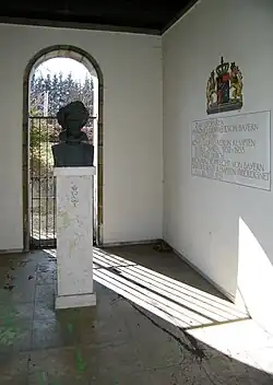 Zum 40. Todestag des Königs im Jahr 1926 wurden die Pläne wieder aktiv aufgenommen, 1932 konnte der Bau des tempelartigen Bauwerks begonnen werden. Am 16. Juli 1933 wurde die Bronzebüste unter dem Protektorat des Kronprinzen Rupprecht von Bayern mit einer nationalsozialistisch geprägten Rede enthüllt.[2] Die heroische Büste des Königs auf dem Marmorsockel stammt vom Grönenbacher Bildhauer Ludwig Eberle.[3]