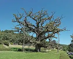 Um das Jahr 1835 ging eine andere Eiche ein, die etwa 150 Meter westlich der Königseiche etwas höher als diese stand.[27] Sie hatte einen ähnlichen Umfang, war ungefähr gleich hoch[6] und ist ebenfalls in den älteren Schilderungen des Kurbads beschrieben und abgebildet. Der Schriftsteller Gustav Kühne erwähnte im Jahre 1838 in der Zeitung für die elegante Welt erstmals Stützen zur Entlastung der großen Krone: „Der König unterhält das Bad auf eigene Kosten, setzt aber dabei noch immer jährlich nicht unansehnlich zu. In der Nähe seiner Wohnung ist eine berühmte Eiche, deren Zweige mit Eisenstangen unterstützt werden, und deren Alter auf fünfzehnhundert Jahre geschätzt wird.“[11]