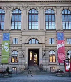 1866 wurde die Einrichtung aufgrund des erteilten Musikunterrichts als Konservatorium benannt. 1877 konnte die Akademie und Konservatorium ein neues Gebäude am Nybrokajen in Besitz nehmen, das einen großen Saal enthielt (Musikaliska akademiens stora sal). Architekt war Johan Fredrik Åbom.