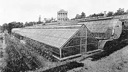 Außerdem wurden zwei großflächige Gewächshausanlagen errichtet, die durch den Potsdamer Hofbaurat Edmund Bohne geplant und ausgeführt und später durch den Hofgärtner Johann Josef Glatt (* 1843; † 1911) betreut wurden. Die Anlage bestand aus zwei getrennten Komplexen und war mit für damalige Verhältnisse modernster Technik ausgestattet. Jeder der beiden Gewächshauskomplexe verfügte jeweils über Vorrichtungen zum Schattieren der Glasfronten, Lüftungsmechanismen sowie ein Kesselhaus zum Betrieb einer Heißwasserheizung, mit der sowohl der Erdboden als auch die Luft erwärmt werden konnten. Die Häuser waren in insgesamt 21 Abteilungen untergliedert, von denen 15 für die Kultur von Reben und fünf für den Anbau von Pfirsichen genutzt wurden.[11]
