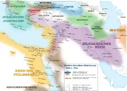Am Ende des 2. Jahrhunderts und zu Beginn des 1. Jahrhunderts v. Chr. hat es überall in Kleinasien verstreut griechische Städte gegeben. Mit dem Seleukidenreich wurde die Grenze zwischen griechischer Zivilisation und ländlichem Anatolien im Landesinnern aufgeweicht. Doch die Monarchien von Pontos, Kappadokien und Armenien waren in diesen Prozess nicht einbezogen.[23]
